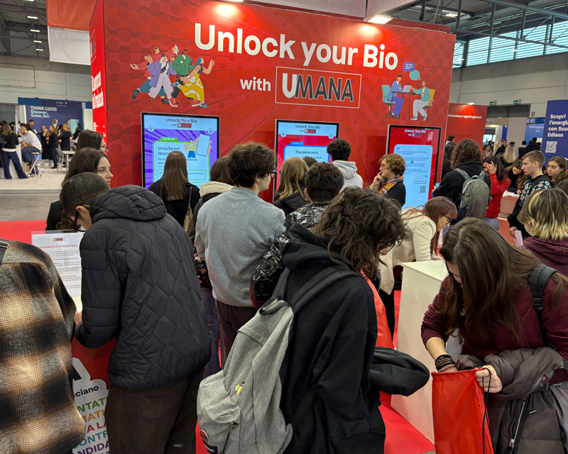 Dalle 12.00 alle 13.30 saranno attivi i servizi di Unlock Your Bio (totem interattivi) e CV e Colloquio: il tuo primo check (esperienza individuale)